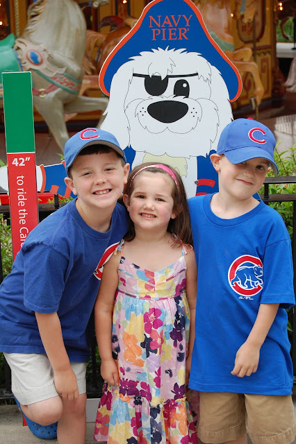 This was definitely one of our little random, spur-of-the-moment, road trips. Thomas thought it might be fun to take the kids to Chicago to see the Cubs play. We started our journey Friday at about 4:30 pm. We really had no plans of how far we were going or where we would stay so we just drove until we decided to park it. By the time Thomas was ready to stop and find a hotel there wasn’t a good place to stop for about an hour or so. We ended up stopping about 30 minutes away from Chicago and spent the night. The next morning, we drove to Navy Pier in Chicago and goofed off a little while before we went to the ball park.